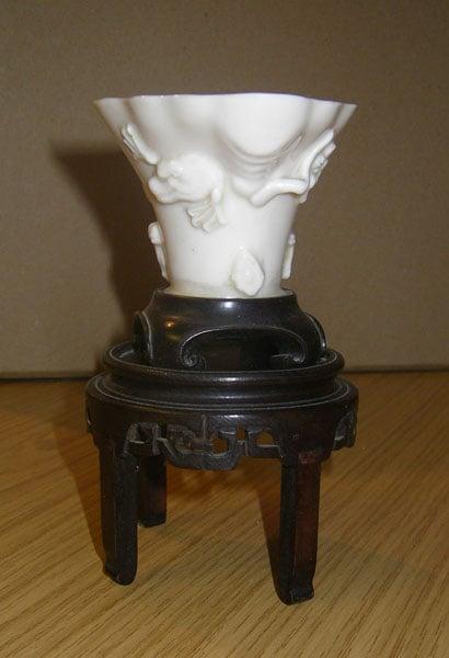This small bowl was made for the export market. The blanc de Chine porcelain makes the white bowl almost translucent.