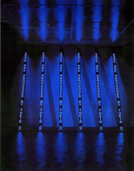 An installation consisting of 6 double sided vertical LED signs with titron blue diodes. One of 3 works by Jenny Holzer to be displayed in 1 room. These works form part of a collection called ARTIST ROOMS consisting of 725 works of art formerly owned by Anthony d'Offay which will be divided into 50 rooms by 25 artists plus 10 additional works. Acquired jointly by Tate and National Galleries Scotland through The d'Offay Donation with assistance from the National Heritage Memorial Fund and the Art Fund 2008. As well as showing artistsÂ’ work in depth, the unique intention behind this acquisition is that the rooms will tour the UK, as well as being shown in NGS and Tate. ARTIST ROOMS was bought for £26,530,219 with a grant of £1 million from the Art Fund.