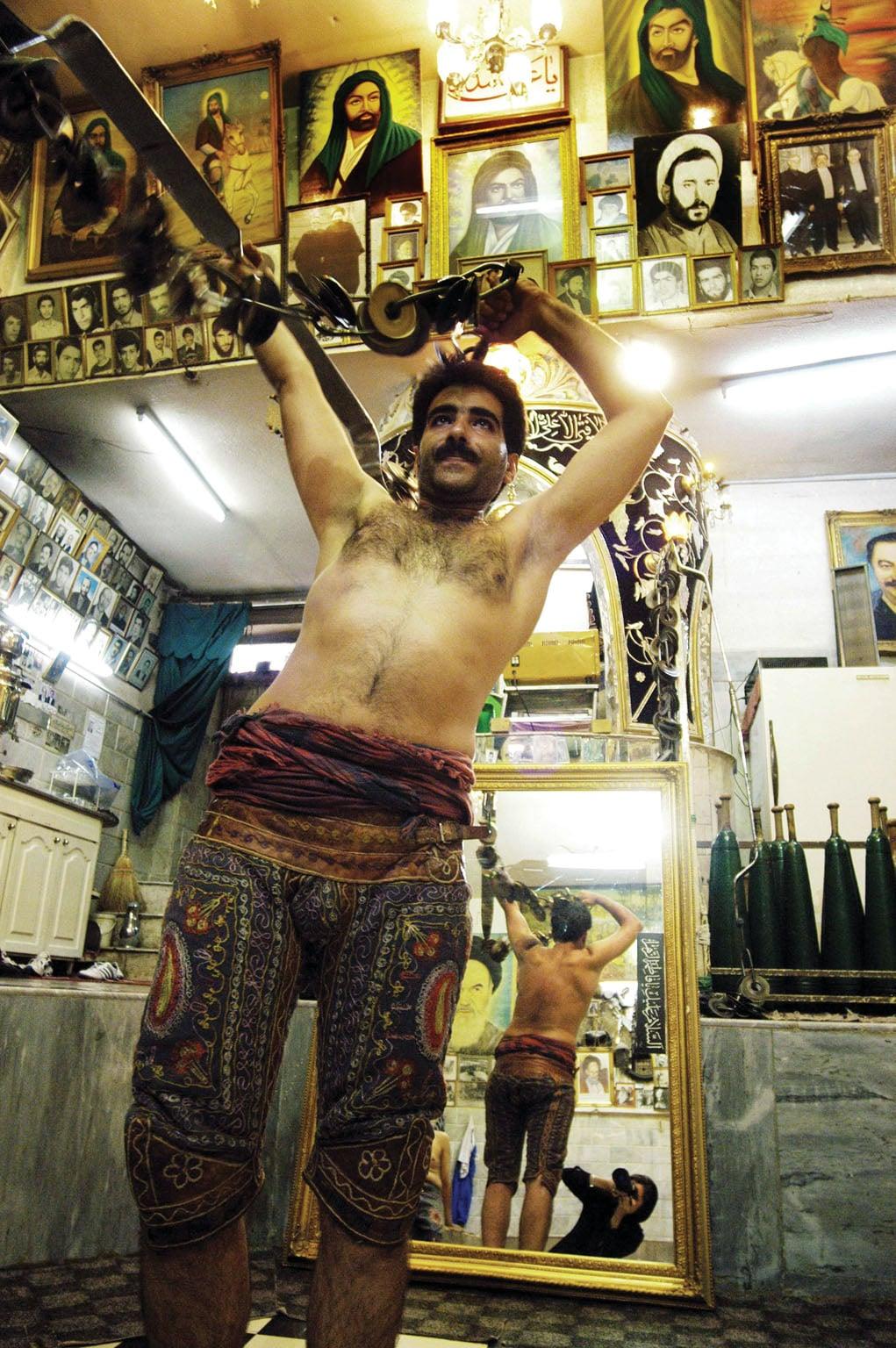 This photograph forms part of the Art Fund Collection of Middle Eastern Photography. This is an Art Fund initiative for the British Museum and V&A and the broad aim is to create a world-class capsule collection of major names and emerging talents in photography from the Middle East (whether living in the region or in diaspora), from 1900 to today. The Art Fund has given the two museums grants over £150,000 for the collection and additional support for the tour of the collection. Atashi is an Iranian photographer who wants to document public places to give an insight into Iranian life and society. This work from the Zurkhaneh series shows the interior of a Zurkhaneh or sports arena with men in their traditional costume. Atashi has skilfully combined these staged scenes with images of herself in them (she can be seen in the mirrors). This is very much a menÂ’s arena and the introduction of a woman here is controversial.