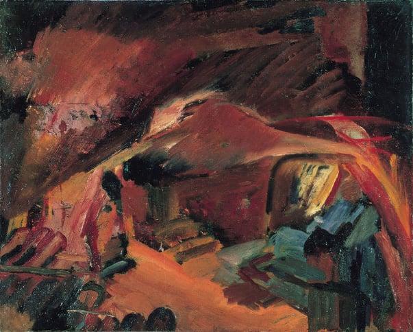 Bomberg was commissioned to paint the Burton-on-Trent bomb store in February 1942, after being refused twice in his application to be an official War Artist. The eerie and destructive sight of the bombs stacked up in the disused mines so fascinated Bomberg that he produced painting after painting, working on greaseproof paper after he finished his meagre canvas ration.