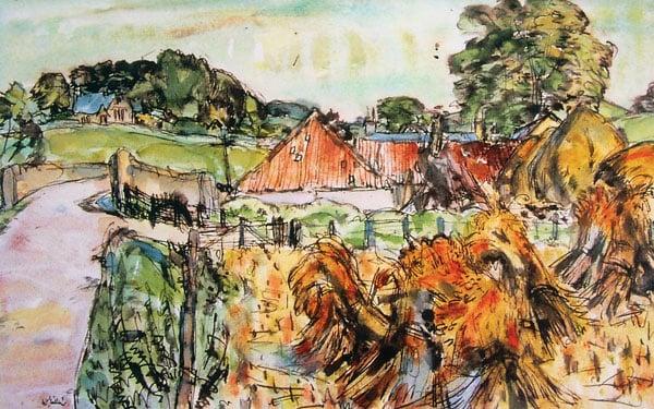 Borthwick Farm is situated near Lauder in the Scottish Borders. Gillies moved to the Borders in 1939 and the landscapes in the area became the inspiration and subject matter for many of his paintings.