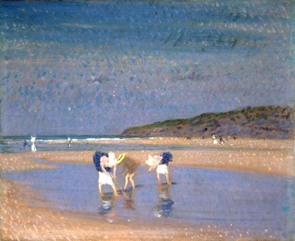 The picture is a good example of Steer's early experimental period when he was assimilating the methods of the Impressionists and Post-Impressionists. The influence of Seurat is particularly felt in the way the surfaces are systematically divided into complementary colours, applied with small dabs of the brush.