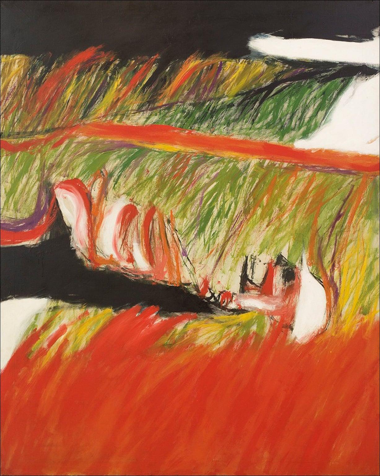 William Crozier IWM, London The title of William CrozierÂ’s oil painting Bourlon Wood refers to an area of forest in northern France which became highly contested during the First World War. This violent moment in the landscapeÂ’s history is represented by the skeletal figure in the painting, a tin helmet still resting on the skull. Crozier, who studied at Glasgow School of Art, gained critical attention in London during the 1960s for his colourful, near-abstract landscape paintings. The appearance of skeletons in the pictures of this period reflects CrozierÂ’s pacifism and concerns with the bleakness and brutality of 20th-century warfare.