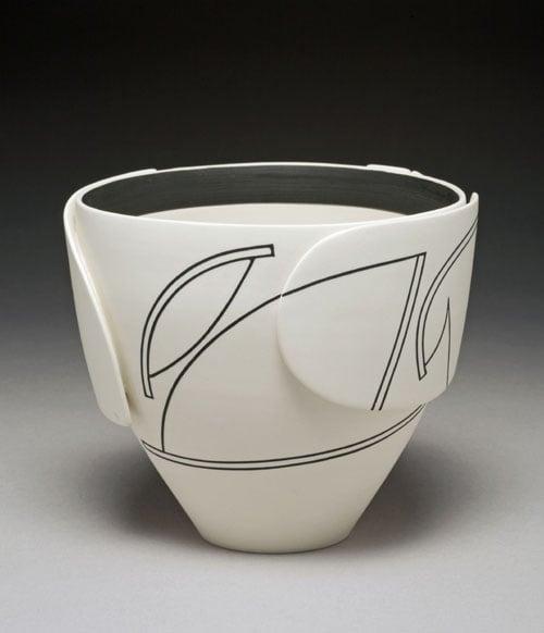 Unglazed porcelain with black inlaid decoration, marked 'N' over 'H' impressed in circle.