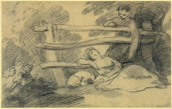 Study for 'The Mushroom Girl'. Plus a lithograph of 'Boy and Girl by a Stile' by R J Lane. One of five gifts to two museums by H. J. Pfungst through the Art Fund between 1904 and 1906.