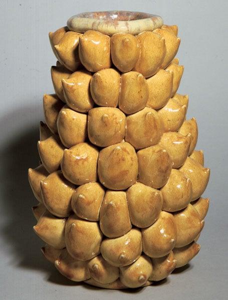 The bottle takes its inspiration from the natural world, in this case, garlic bulbs, and it epitomises the artist's use of crystalline glazes.