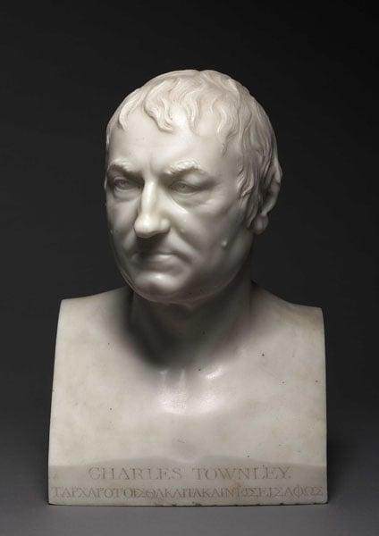 A posthumous bust of Charles Townley (1737-1805) by his friend and contemporary, Joseph Nollekens. Charles Townley was the noted collector of ancient sculpture of his day, partly because his collection was on display in his London house and available to view. He was a friend and patron of artists and scholars and a Trustee of the British Museum. The museum owns two paintings of Charles Townley: Zoffany's 'Charles Townley and his friends in the Park St. Gallery, Westminster' (ArtFunded in 1939) and Cosway's 'Group of Connoisseurs'.