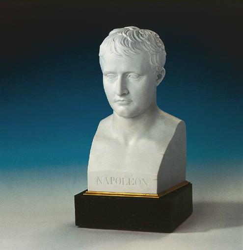 Bust of Napoleon I, after A.D.Chaudet, a reduction of the official marble portrait bust of 1804 made by Antoine-Denis Chaudet, owned by Napoleon but since lost. A porcelain version was made at Sevres from 1805 in three sizes, of which this is the second. It was moulded after a model by Alexandre Brachard, head of the sculpture department at Sevres, then worked up by one of his assistants, Jacques-Jean Oger.