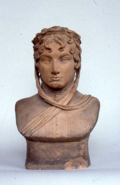 This impressive bust is of the ill-fated consort of George IV when Princess of Wales. Seymour Damer was virtually the only British sculptress of note before the 20th century, even if Walpole's praise of her as the equal of Bernini and the great sculptors of antiquity is extravagant. She was a personal friend of the Princess of Wales, and the present bust was done from life. It is a good example of her late style, combining forceful characterisation with a pure neo-classical treatment of form.