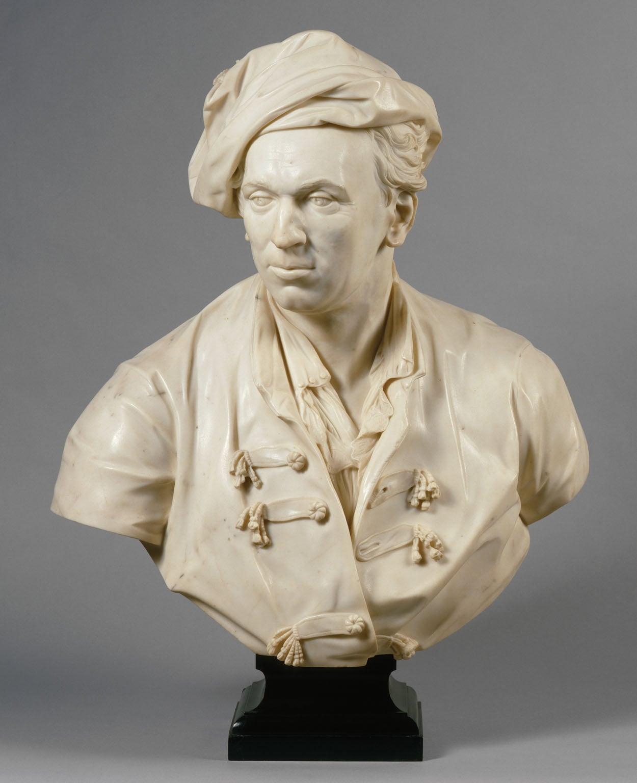 This bust shows the sculptor at the end of his life when he was plagued by financial troubles. The head is turned three quarters left, he wears a loose cap and coat with frogged braid. It was formerly considered to be a self-portrait but is now attributed to Joseph Wilton. Roubiliac was one of the most accomplished sculptors working in England in the 18th century. He made his name with his statue of Handel in Vauxhall Gardens in 1737, which was later bought for the V & A with the help of the Art Fund in 1965.
