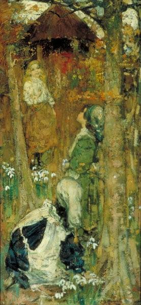 This work is part of the J W Blyth collection of 116 paintings. Mr J.W. Blyth lived in Kirkcaldy and ran a linen mill there. His house was filled with his large art collection and he lent a large number of the paintings to the gallery during his lifetime. He was gallery convener for some time and grandfather to Michael Portillo, former Conservative MP.