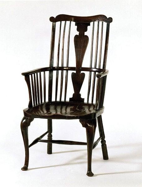 Chair bears a damaged label reading, ' RICHARD HEWETT/ CHAIR-MAKER, at Slough in the..ar Windsor/ MAKES and sells forest chairs/ and all sorts..'. In his lifetime many magnificent pieces of furniture were presented by the late Brigadier W,E. Clark CMG, DSO, to the Victoria and Albert Museum through the Art Fund. After his death, a trust was set up in 1976 so that his estate could be used by the V&A to add to its collection of English seventeenth. and eighteenth-century furniture and cIocks. Again, Brigadier Clark wished this bequest to be through the Art Fund, though the fund is administered by the V&A.