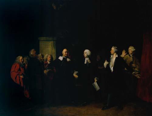 A painting to commemorate the last performance at the age of 90 of Charles Macklin (?1697-1797) in his most famous role.