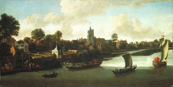 Depicts Old Corney House and garden, home of 1st Earl of Bedford. No other views are known which show Chiswick before the destruction of Old Corney House and the building of New Corney House, and of the early Georgian Mansions along the Mall.