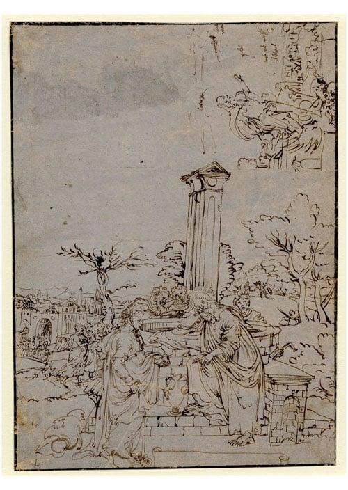 Christ and the Woman of Samaria + sketch for Christ Risen, c. 1552–1553