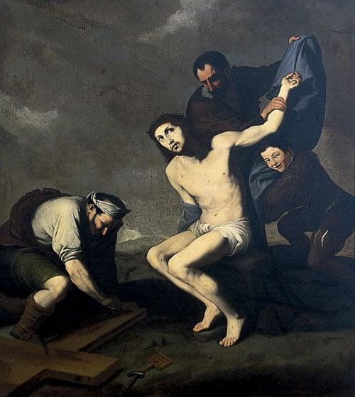 On the right-hand side of this painting, two figures disrobe Christ. While the expression on the face of the taller figure is slightly obscured, the grinning expression on the young boy's face reveals a sense of menace. The figure on the left-hand side of the painting prepares the cross on the ground. This copy of a work by Ritera was part of a collection of 117 works belonging to the industrialist and engineer F.D. Lycett Green and bequeathed to York through the Art Fund, in 1955, in recognition of the remarkable efforts made after the Second World War by its curator to transform it into a gallery of international importance.