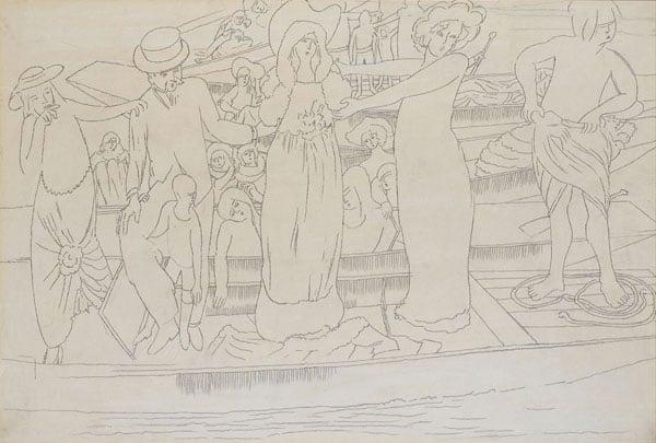 This is a study for a large unfinished painting 'Christ preaching at Cookham Regatta' already in the GalleryÂ’s collection. A feint pencil outline of the study is drawn on the top left area of the unpainted canvas. The work has particular significance for the Gallery as the site can be viewed from the adjacent bridge over the Thames and seeing the study would add stimulation and interest for visitors. The finished painting from the Regatta Series for which this study was drawn was on loan to the gallery for 25 years until 2003 and is now in a private collection.