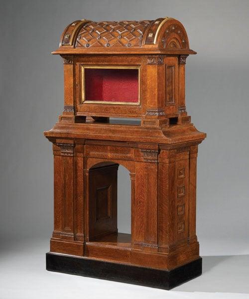 This coffer and stand is the only known complete survivor from a set of four originally made between 1831 and 1841 for the Scarlet Drawing Room in Lansdown Tower where it served as both an integral part of the interior scheme, and as a treasure chest housing items from BeckfordÂ’s collection. The coffer and stand were probably designed by Beckford and the architect Henry Edmund Goodridge. They are superb examples of the architectonic furniture created for the Tower that combined historical inspirations with modern forms. Lansdown Tower (now more commonly known as BeckfordÂ’s Tower) was built 1826-7 as a study and retreat for Beckford, who would daily ride just over a mile up to the Tower from his home in Lansdown Crescent. Designed by the architect Henry Edmund Goodridge, the Tower has been recognised as one of the most significant British buildings of the 1820s, combining historical inspirations with modern forms.