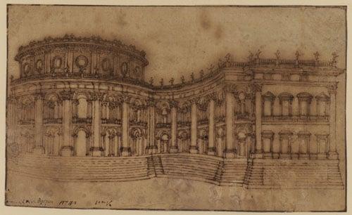 Collection mainly of 147 architectural drawings, mainly Italian. Includes a large number of unattributed 'Roman School' works, and works by Bernini, Perino del Vaga, Bernardino Pocetti, Francesco Salvati and Girolano da Carpi. The work illustrated is the Louvre, East Facade by Gian Lorenzo Bernini.
