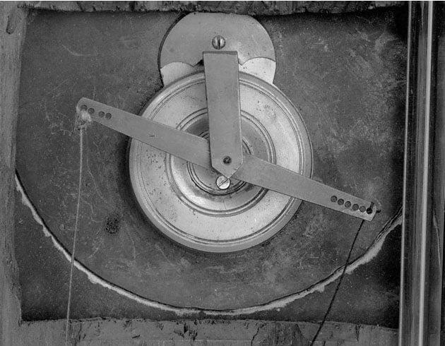 1) Oak table, c1780. 2) Bureau-cabinet, walnut veneer on oak & pine cresting, c1715. 3) Drawers, walnut veneer on oak, circa 1715. 4) Barometer, walnut veneer on oak, J.Hallifax Barnsley, circa 1740. 5) Barometer, as above. 6) Child's chair, mahogany, circa 1750.