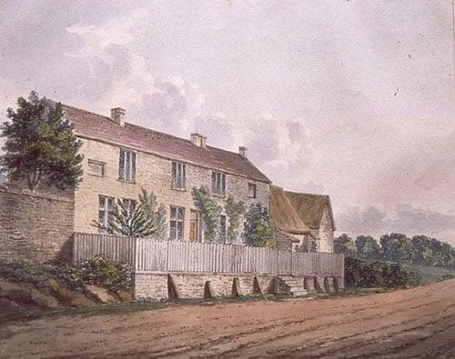 Collection of nine watercolours illustrate in considerable detail the architecture of south Bedfordshire in the early 19th century. 1.) Turvey Farmhouse, 2.) House at Eversholt, 3.) Farmhouse near Totternhoe Church, 4.) Allingham and Seer's house at Eaton Bray, 5.) Steppingley Park House, 6.) Mr Fletcher's House, Toddington, 7.) Potton, Bedfordshire, 8.) Ridgmont, Bedfordshire, 9.) Font in the Garden of the Mansion at Sharpenhoe.