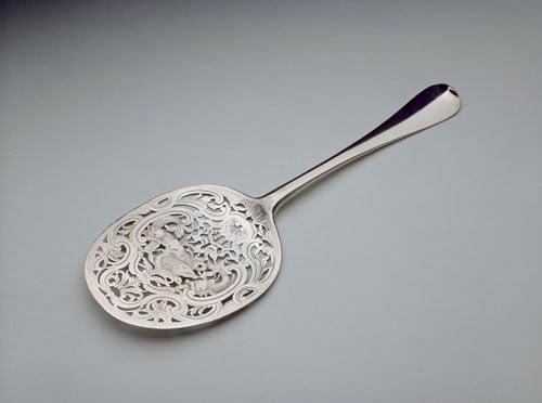 200 items of silver representative of the Huguenot school of goldsmiths, including Pierre Harache, John Chartier, Pierre Platel (father-in-law of Paul Lamerie), Anthony Nelme, David Willaume, Louys Cuny and Paul Crespin. Early pieces include the Elwes Salt, 1631-2, Rose water ewer, 1632-3, Charles II bellows 1662-3. There are 44 pieces by Paul Lamerie including a punch bowl engraved with figures in contemporary dress which, with a toilet set of 28 pieces, was made for George Treby, MP. These works are part of a larger bequest which included pictures, prints, Oriental ceramics and silver plate.