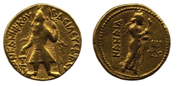 Collection includes; Coin of the Buddist King, Kanishka with reverse type the goddess Nanaia, a Lion slayer type of Candragupta II, a coin of Mubarak II, Sultan of Delhi, a Zodiacal mohur of Jahangur (1036 A.H), and a mohur of Shah 'Alam II. of Delhi.