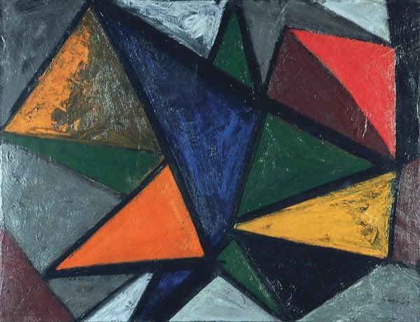 Gear served as curator to the Towner Art Gallery from 1958-64 and this painting is from the artist's period in Paris (1947-50), as evidenced from the French date inscribed on the reverse. The use of bold colours contained within irregular black lines is characteristic of this period when Gear was at the forefront of abstraction in Europe, creating angular almost dirty compositions that contributed significantly to Cobra's expressionist re-invention of modernism following the wholescale destruction of world war.
