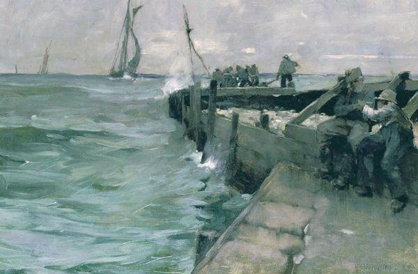 This work was painted during the artist's visit to Cornwall in 1888 and the style shows the strong influence of the Newlyn School and the use of their particular method of painting known as the 'square brush technique'. This allowed the artist to be less distracted by detail and added vitality to the work. The treatment of the sea in this work is a particularly masterly use of the technique.