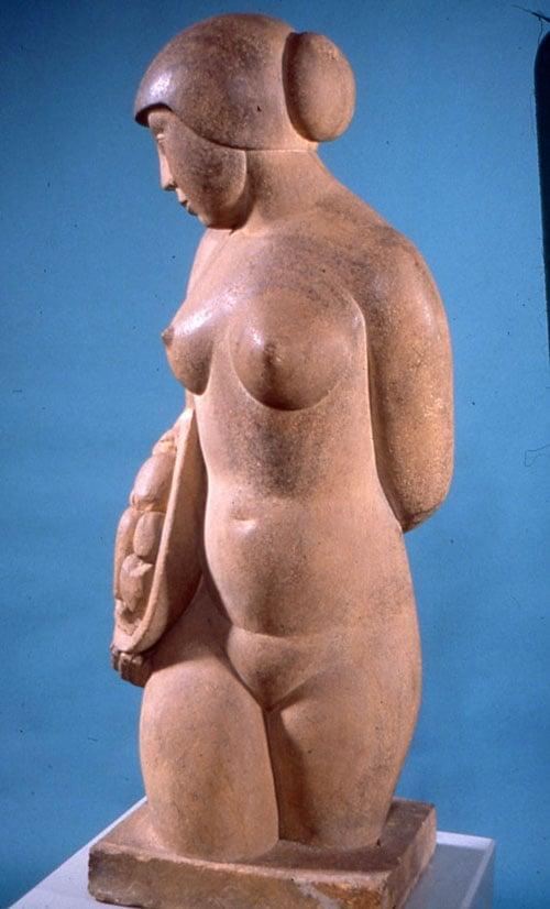 From an unpublished fragment of his autobiography, we learn that the immediate inspiration for this work came to Dobson during his travels in Ceylon in 1924 with the novelist L. H. Myers. His reputation had already been established by the Mansard Gallery's Group X Exhibition four years earlier, and Ezra Pound was soon introducing Dobson to his friends as the saviour of sculpture in Britain. Roger Fry applauded the clay sketch for Cornucopia in 1925 as something quite out of the ordinary, and in 1927 Clive Bell congratulated its author on a masterpiece without a British rival. It is certainly one of the most important modern carvings produced in this country before the advent of Henry Moore and Barbara Hepworth.