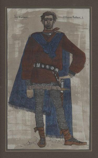 This collection of 8 designs for the characters in 'The Wallace' adds to the 2 Cruddas designs already in the Theatre Collection. Audrey Cruddas became one of the leading modern theatre designers of the post war period. In the 1950s she moved to Great Bardfield where she became involved with the dynamic art community which included: John Aldridge, Edward Bawden, and Walter Hoyle. 'The Wallace' by Sydney Goodsir Smith was performed at the Assembly Hall in the Edinburgh Festival in 1960. This is part of a gift of works by Joan Hurst to many museums and galleries in 2009 and 2010.