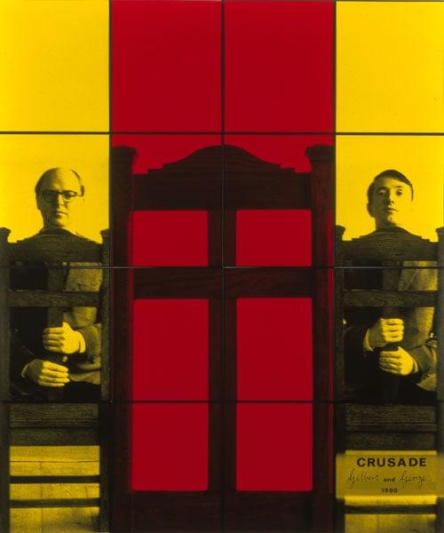 One of 9 works by Gilbert and George to be displayed in 2 rooms. These works form part of a collection called ARTIST ROOMS consisting of 725 works of art formerly owned by Anthony d'Offay which will be divided into 50 rooms by 25 artists plus 10 additional works. Acquired jointly by Tate and National Galleries Scotland through The d'Offay Donation with assistance from the National Heritage Memorial Fund and the Art Fund 2008. As well as showing artistsÂ’ work in depth, the unique intention behind this acquisition is that the rooms will tour the UK, as well as being shown in NGS and Tate. ARTIST ROOMS was bought for £26,530,219 with a grant of £1 million from the Art Fund.