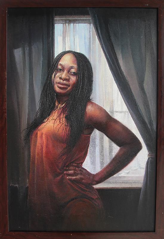 Titus Agbara was born in Lagos, Nigeria, and studied art at Federal Polytechnic, Auchi. He moved to the UK in 2007 and has lived in Oldham since 2016. Damilola is a portrait of the artist’s friend, a fellow migrant, whose name relates to the Yoruba word for prosperity. A large proportion of Oldham’s population are from black and minority-ethnic backgrounds and Gallery Oldham is keen to reflect this demographic diversity in its holdings. Damilola is the first portrait of a black woman, and the first work by Agbara, to enter the collection.