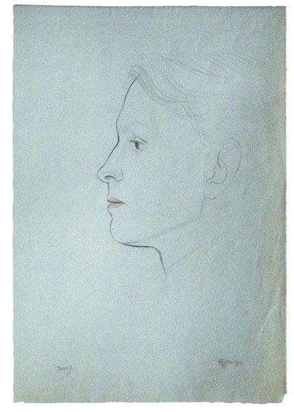The portrait marks the close friendship between Gill and Jones who had first met in January 1921. The current drawing is documented in Gill's diary as the product of two sittings in late 1921.