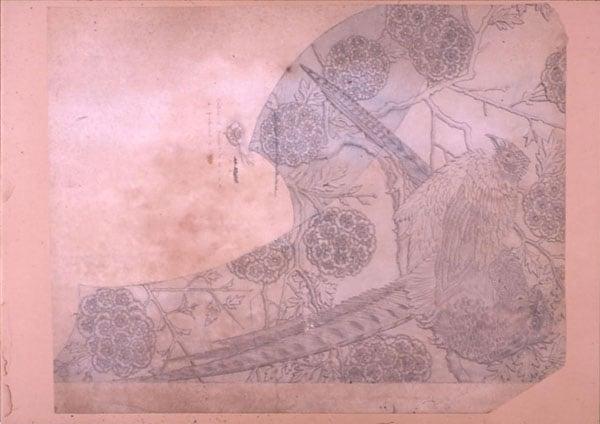 Jeckyll was commissioned by Barnard, Bishop and Barnards to design a cast-iron pavilion for the Philadelphia Centennial Exhibition of 1876. A particular feature of the pavilion's structural decoration were the brackets. For the spandrels of these brackets, Jeckyll designed a variety of 'Bird and Flower' motifs including this one entitled 'Whitethorn with Pheasants'.