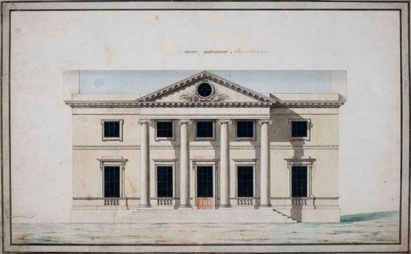Drawing of a proposed villa to be built for John Lewis at Llanaerton.