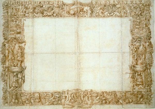 Design for an ornamental border. It is possibly a design for a frontpiece for an exceptionally large and sumptuous volume, or is perhaps a design for an ornamental border of a fresco.