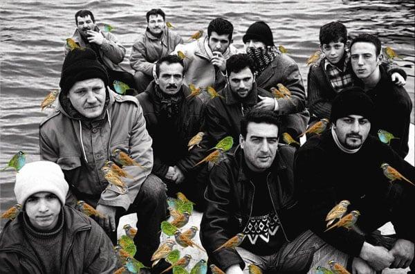 This photograph forms part of the Art Fund Collection of Middle Eastern Photography. This is an Art Fund initiative for the British Museum and V&A to acquire a collection of 20th century and contemporary photography and digital images by artists from the Middle East (whether living in their countries of origin or outside). The Art Fund has given the two museums grants over £150,000 for the collection and additional support for the tour of the collection. Moral explained this piece as follow, 'Immigration is one of the significant problems of our century. They are the new slaves of today. We usually watch them on the media as frustrating groups of people, without identities, stuck in a boat. They are the contemporary marginals. In my work I tried to give them an identity, an expression and finally a soul. In an unsafe boat in the ocean, knowing that at any moment they could go to the bottom we can see their courage by looking in their eyes. If the boat sinks, digital nightingales can fly away but they do not have wings. The nightingale represents love, hope, separation in Turkish literature. I wanted to give wings as a gift to the hopeless ones.'