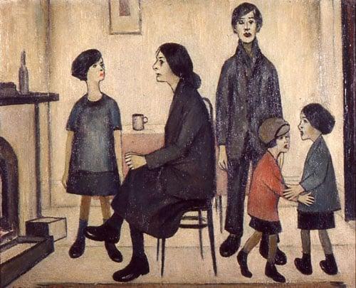 Lowry carefully observed the relationships of those whose houses he visited in the course of collecting rents, but only rarely did he transfer these images to paper or canvas. Discord, is one of these unusual scenes. Here the isolation, so typical of Lowry's crowds, is depicted within the confines of a room. The large and detailed figures are the epitome of the loneliness that Lowry himself felt. 'My whole happiness and unhappiness were that my view was like nobody else's. Had it been like, I should not have been lonely; but had I not been lonely, I should not have seen what I did.'