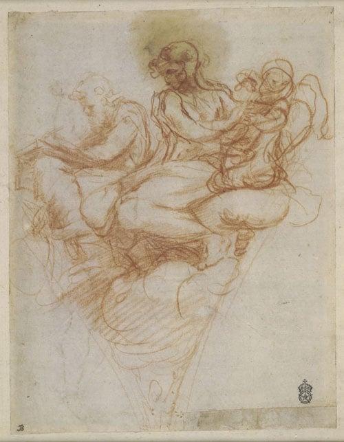A double-sided sheet of Studies; on the recto a study for the pendentive in S Giovanni Evangelista, Parma, representing St Matthew and St Jerome. On the verso two studies of a bound Cupid.
