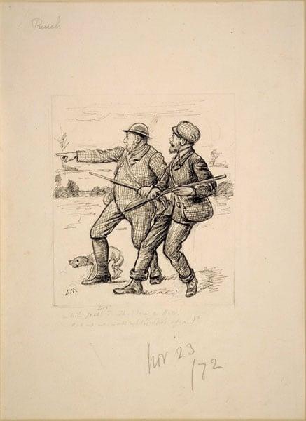 Five drawings for 'Punch' magazine including 'Valour in the Field' (illustrated). Part of a collection of 300 drawings and part of a bequest to 57 museums by the estate of George du Maurier through the Art Fund in 1934.