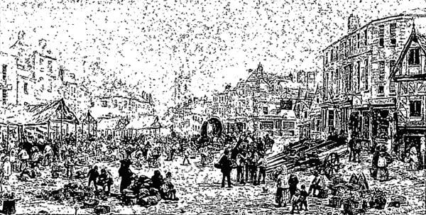 This a valuable record of the town in the second half of the nineteenth century before its redevelopment and modernisation. The artist was born in Derby and specialised in topographical views of British market towns and cities. She created compositions in which the whole panorama of a street or square was united in one unified scene.