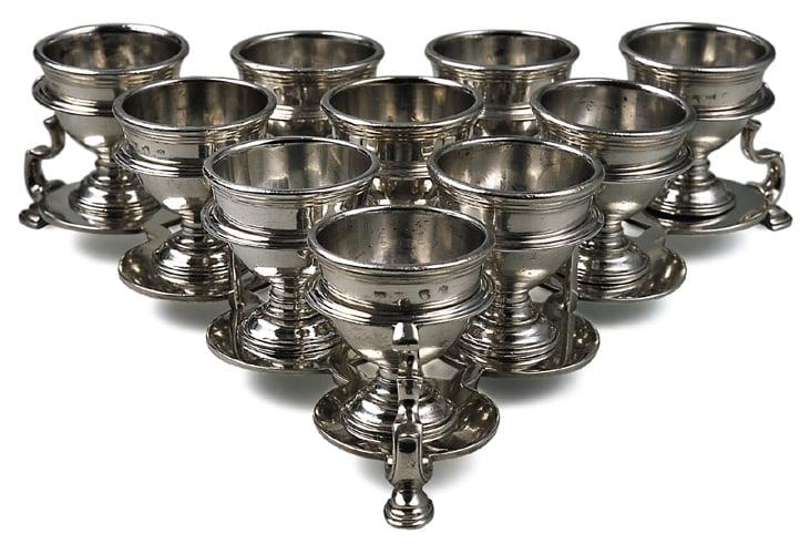 Egg-cup frame & 10 egg cups, 1740