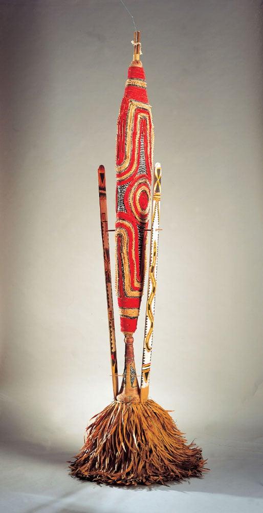 Head-dresses representing good spirits which were made for a feast commemorating generational change which is celebrated every 25 years by the Uvol people, on the South West of the island of New Britain.