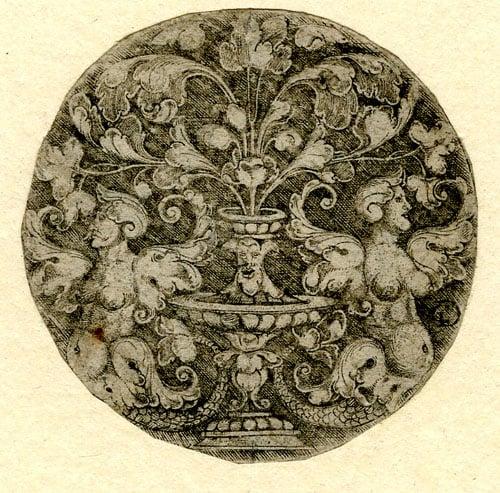 Ornamental engraving with 2 sphinxes by the monogrammist C.D. Bartsch.