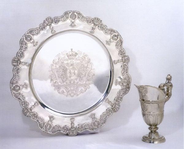 This magnificent French silver ewer and basin were made for the British military hero John Churchill, 1st Duke of Marlborough, in Lille in 1711/12 during the allied occupation. The fine engraving incorporates appropriate military emblems - a trophy of arms with weapons, drums and trumpets, their banners bearing the cipher AR for Queen Anne. During Marlborough's lifetime, the ewer and basin formed part of the buffet display in the dining rooms at Blenheim Palace and Marlborough House, London. They are now displayed in the Whiteley Silver Galleries at the V&A following the Art Fund's successful campaign to save them for the nation.