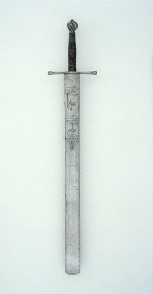 Executioner's sword bearing the date 1674 and engraved with scenes of execution and torture. One of four gifts to three museums by Rupert Joseph through the Art Fund between 1934 and 1941.