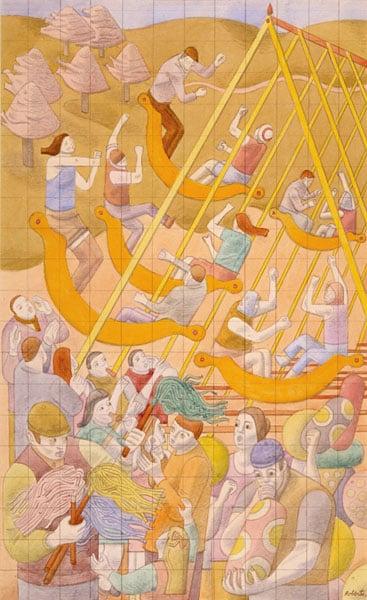 A squared up study for the Painting 'Hampstead Fair', commissioned by the London Transport Board as an advertisement poster.