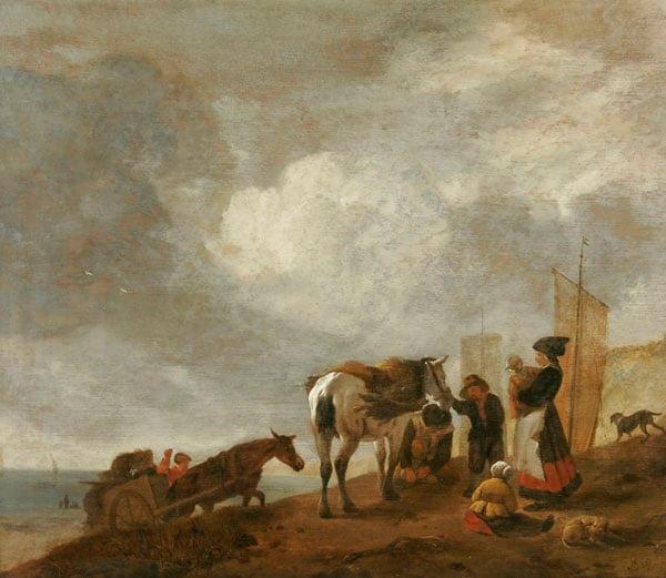 Figures on a Shore, a Mother and Child, a Grey Horse, a Cart Beyond, 1614–1668