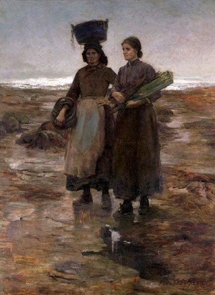 It shows two fisher-women from the North Yorkshire village of Staithes. It was the last major painting before her marriage and marked the end of the artist's ambitious series of paintings of fisher-women.